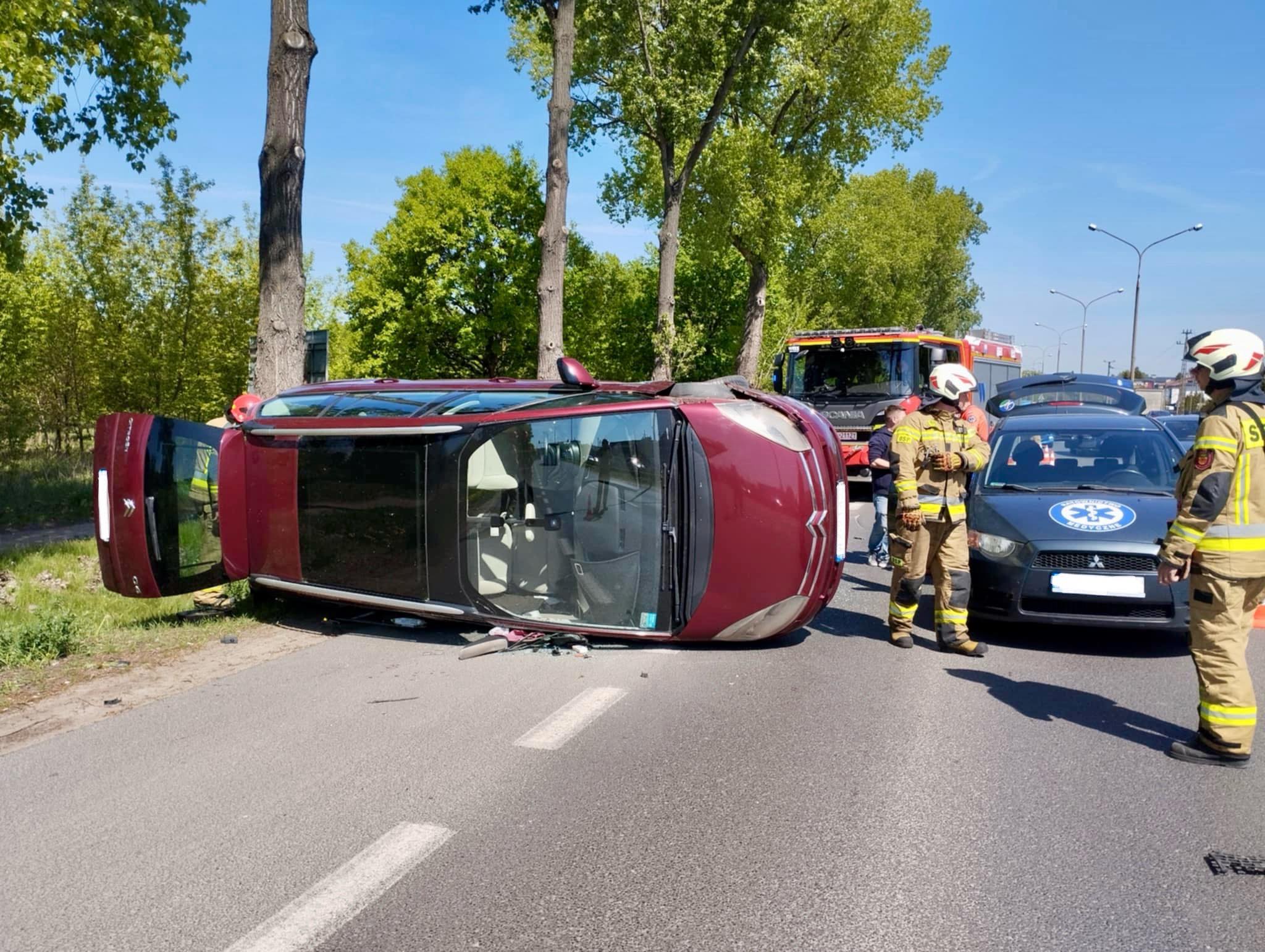 Zderzenie osobówek na S8. Jedno z aut przewróciło się na bok.